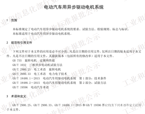 《電動汽車用異步驅動電機系統》,標準編號為QC/T 1068-2016,主要規定了電動汽車用異步驅動電機系統的要求、試驗方法、檢驗規則、標志與標識,適用于電動汽車用異步驅動電機系統。