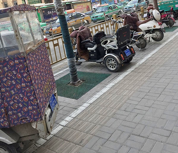 商丘街頭停放的三輪車多有專屬牌照