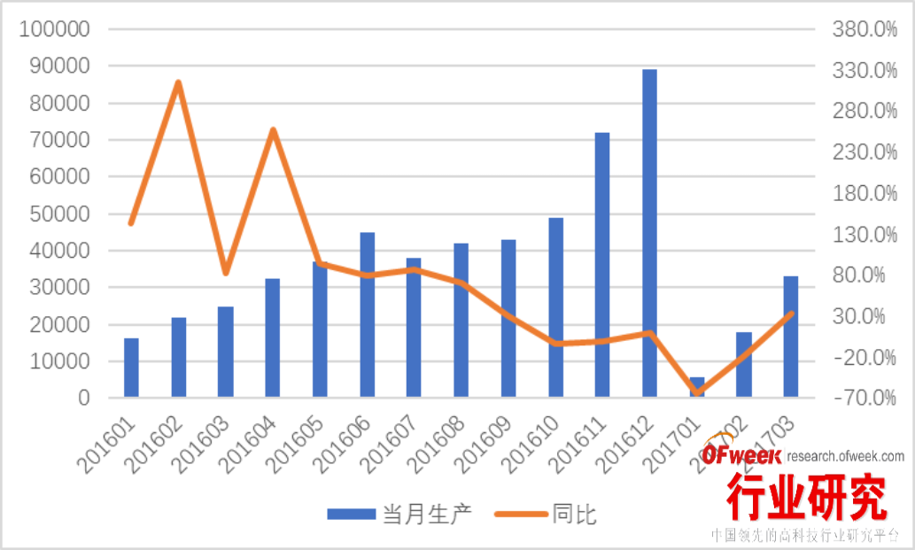 自2017年1月1日正式實施新補(bǔ)貼政策,并且重建《新能源汽車推廣應(yīng)用推薦車型目錄》開始,我國新能源汽車產(chǎn)業(yè)進(jìn)入政策調(diào)整期,經(jīng)過三個月推進(jìn),從月度走勢圖上看,我國新能源汽車產(chǎn)銷情況已經(jīng)逐漸回暖,前三個月的產(chǎn)量呈現(xiàn)穩(wěn)步放量。