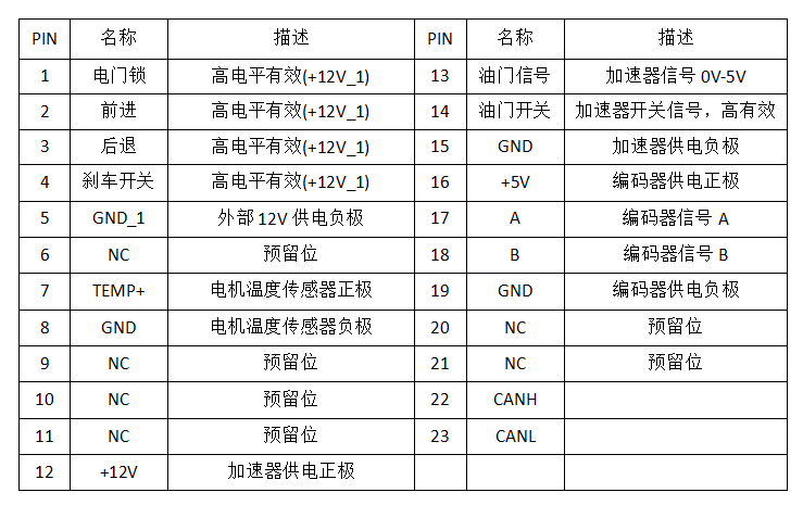 電機控制器接口定義
